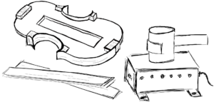 An das Formbrett werden Klötze aus leichtem Holz (Fichte, Linde oder Weide) geleimt. Diese werden mit dem Hohlbeitel in Form gestochen und lassen sich frei gestalten.