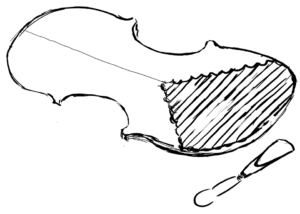 Nun wird die Geige zum ersten Mal gespielt und wir nehmen evtl. klangliche Verbesserungen vor in dem wir die Stärken von Decke und Boden anpassen.