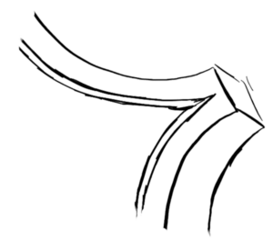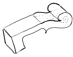 Aus dem Halsblock wird zuerst die Silhouette von Hals, Wirbelkasten und Schnecke gesägt. Auf den beiden flachen Seiten links und rechts wird der Verlauf der Schneckenwindungen aufgezeichnet.