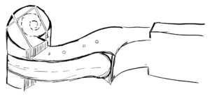 Der Zargenkranz setzt sich aus fünf oder sechs, exakt auf Stärke gehobelten und mit der Ziehklinge geputzten Zargen (bis 1,2mm dick) zusammen. Sie werden über einem heißen Biegeeisen in Form gebogen und anschließend gegen die Klötze geleimt.