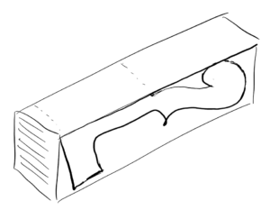 Auch die äußere Kontur von Decke und Boden wird exakt geschnitten, sobald die Ränder der Platten eine Stärke von etwa 5mm erreicht haben und sich leichter formen lassen. Der Randüberstand ist wenige Millimeter breit und seine äußere Kante verläuft parallel zum Zargenkranz.