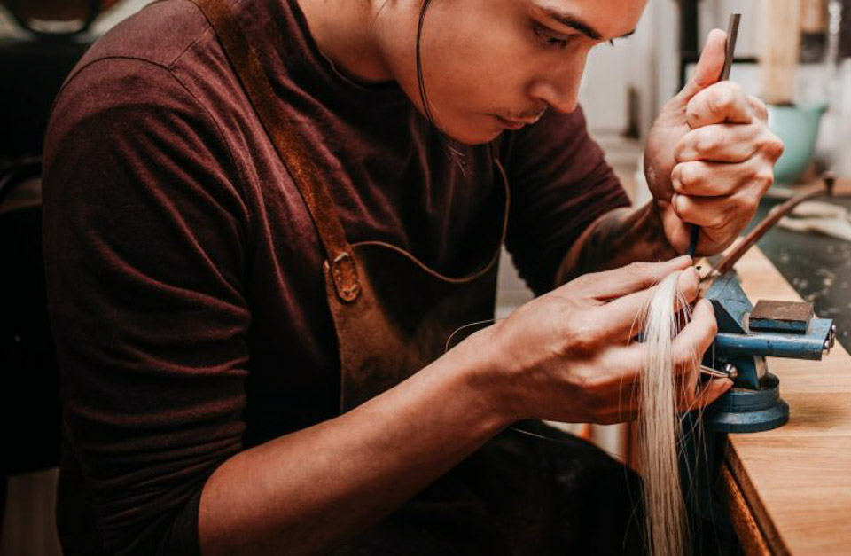 Vorsicht: Ausgeleierte Haare können zu Rissen in der Bogenstange führen. Gehen Sie lieber einmal zu viel zu ihrer Geigen- oder Bogenbauwerkstatt, wenn Sie unsicher sind, ob ein neuer Bogenbezug nötig ist.