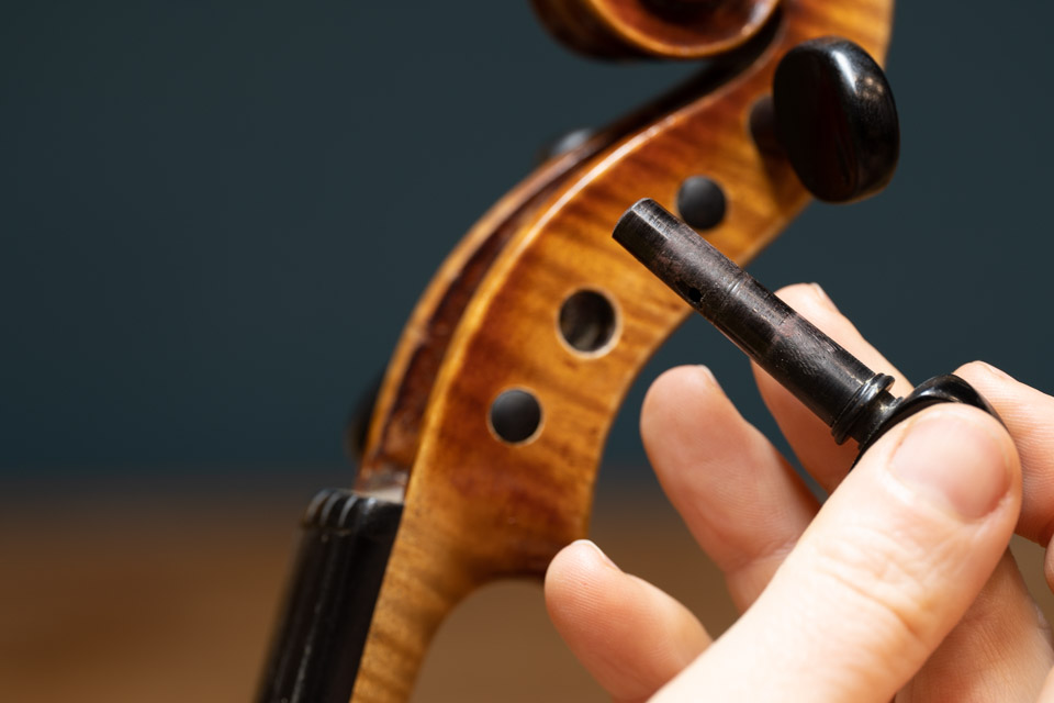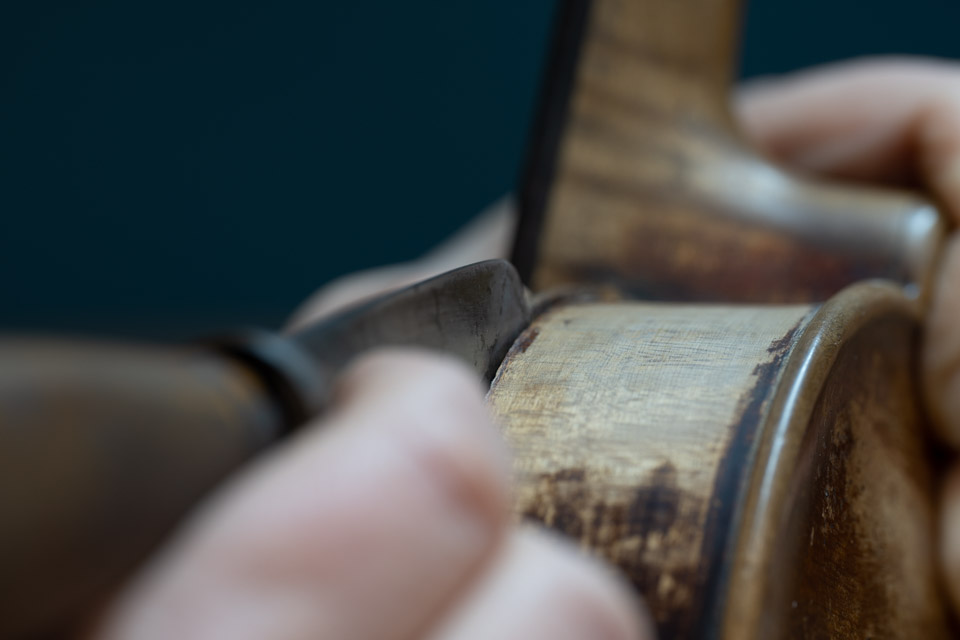 Der Stimmstock oder auch die Stimme hat nicht umsonst diesen Namen. Kleinste Veränderungen der Position können riesen Unterschiede im Klang und in der Spielbarkeit ausmachen. So ist dies nicht ohne guten Grund die erste Stellschraube, die wir Geigenbauer anschauen, wenn eine Musikerin oder ein Musiker nicht mehr zufrieden mit dem Klang Instrumentes ist.