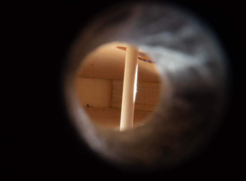 Ein guter Stimmstock wird aus gespaltenem Fichtenholz gefertigt. Er steht gerade und muss perfekt mit Boden und Decke abschließen. Und mit der richtigen Spannung am richtigen Ort stehen. Der Spielraum in dem er zur Klangoptimierung bewegt werden kann, scheint sehr klein. Der Effekt aber kann sehr groß sein und hat schon viele überrascht.
